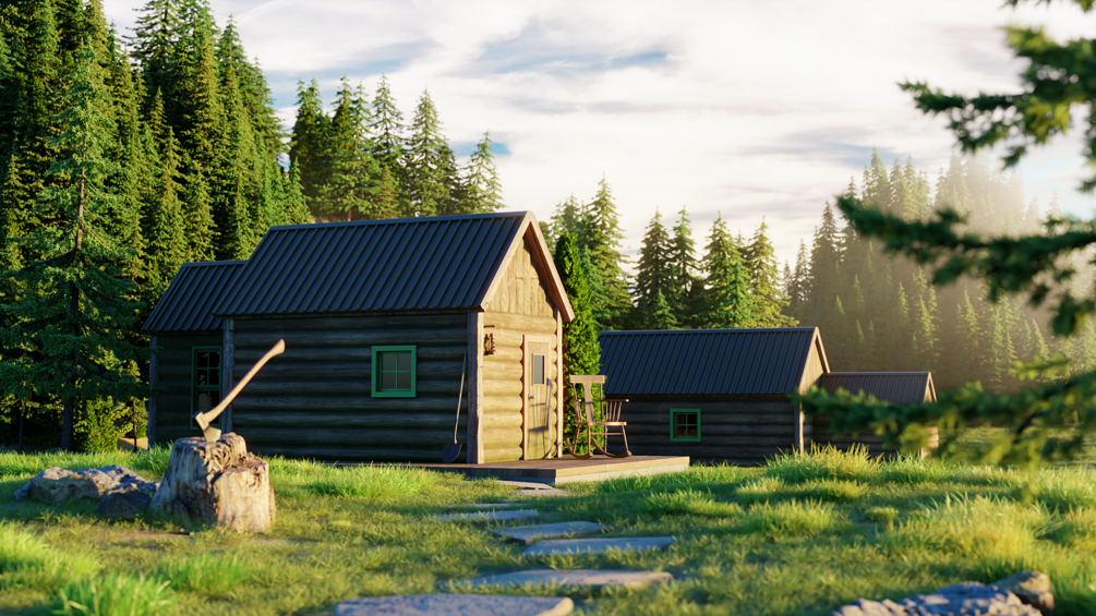 Log cabin project scene made in Blender.